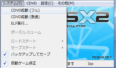指定し終えたらCDVD起動(フル)からゲームを起動。